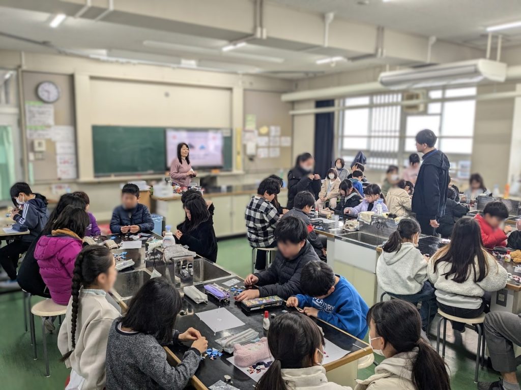 小学校で、伝統工芸廃材を使った伝統工芸つまみ細工体験授業を開講しました