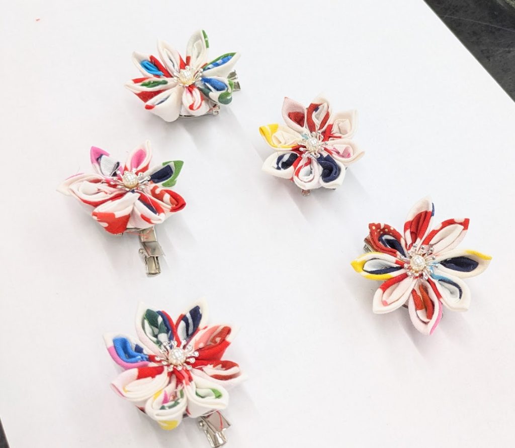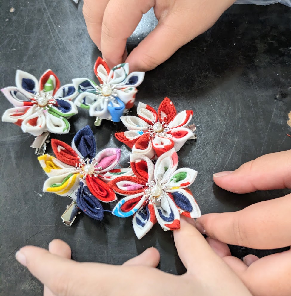 その端材を活かした、簡単なつまみ細工体験を行いました。